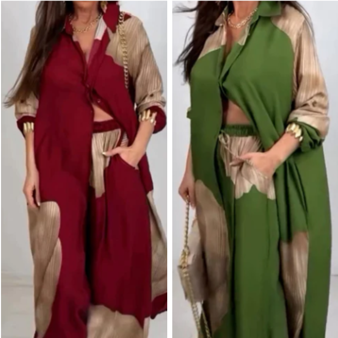 CLASSIC TELJES GOMBOS ING: Ez a szett tartalmaz egy klasszikus, teljes gombos hosszú ing, amely időtlen, sokoldalú megjelenést kínál. Tökéletes a hétköznapi vagy félhivatalos viselethez, az ing többféleképpen is stílusolható különböző alkalmakra.