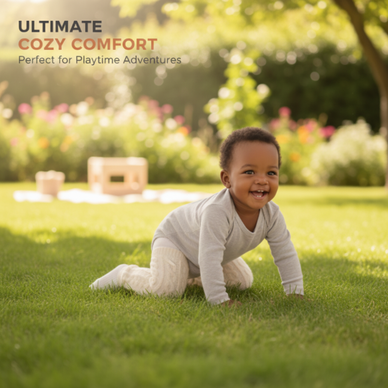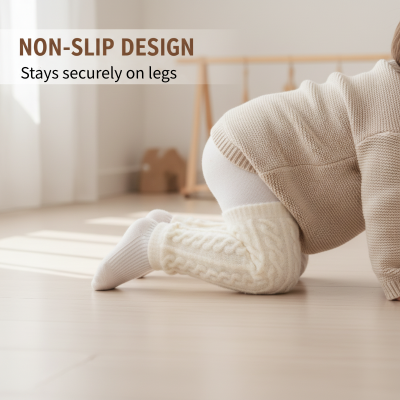 BIZTONSÁGOS CSÚSZÁSGÁTLÓ KIALAKÍTÁS – Kényelmes, mégis rugalmas illeszkedést biztosít, amely a baba mozgásával együtt mozog, biztosítva, hogy a térdvédők a helyükön maradjanak, miközben mászik és felfedez, folyamatos védelmet és meleget nyújtva a térdeknek.