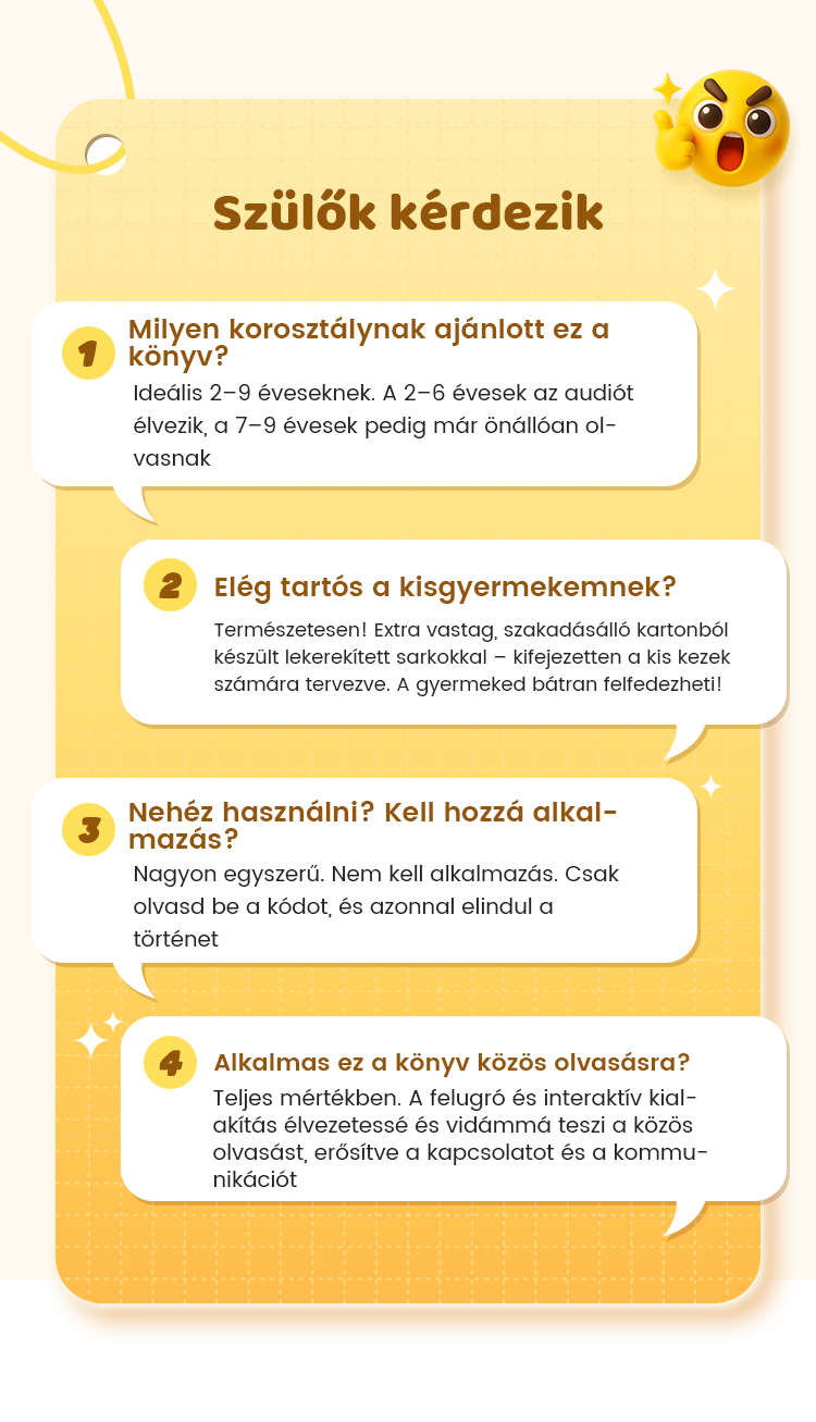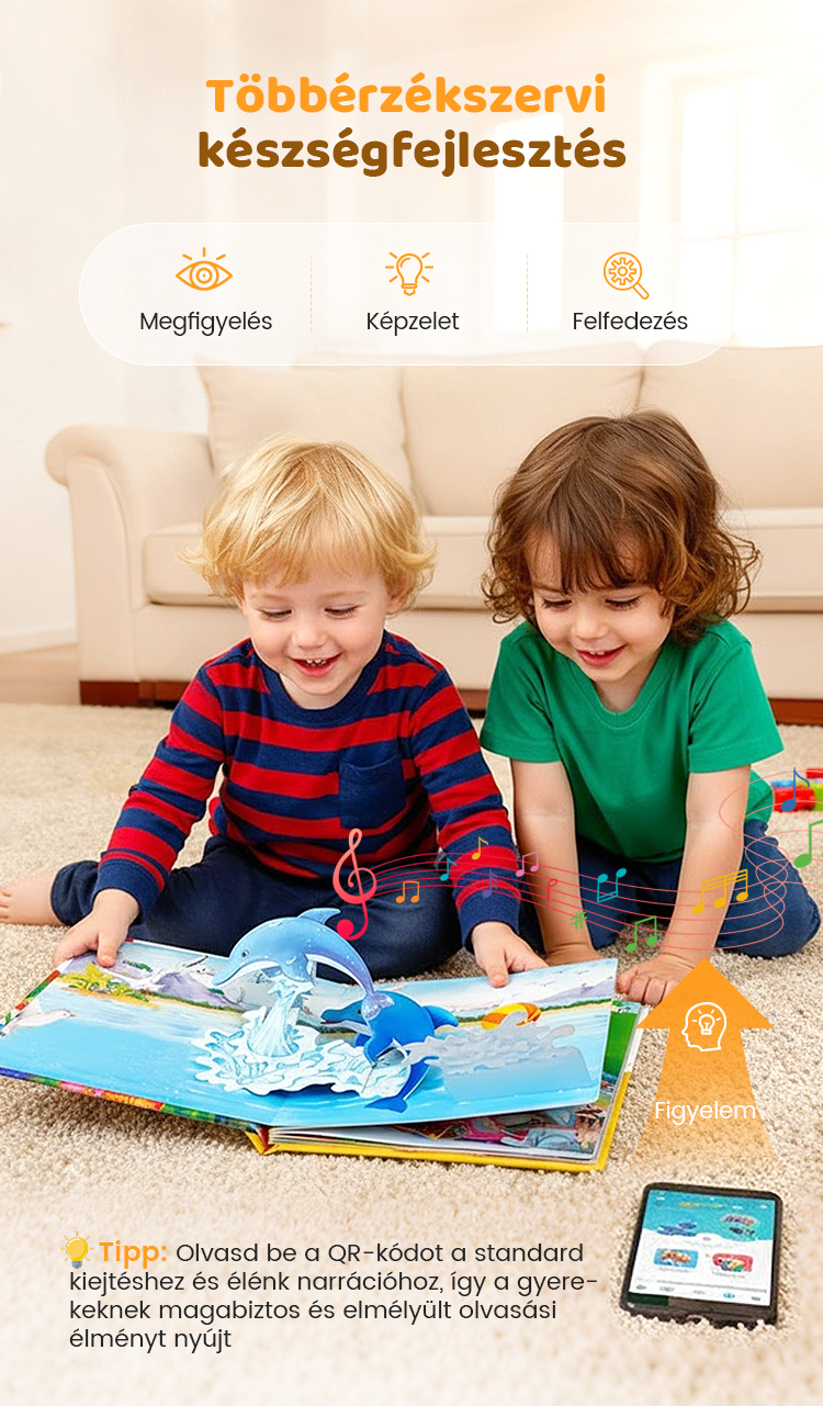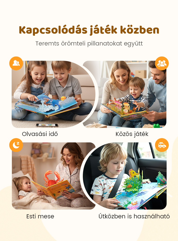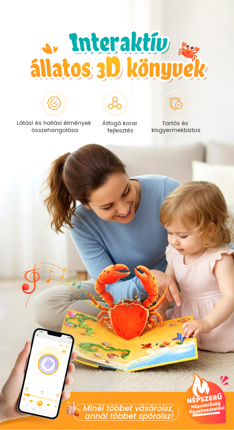 A 3-10 éves kor a kognitív fejlődés aranykorának számít. Használj 3D interaktív olvasást, hogy megszabadulj a képernyőfüggőségtől, és indíts el egy végtelen kíváncsiság kalandot, miközben játék közben életszerű olvasási és képzelőerőfejlesztést építesz.
