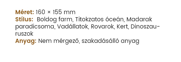 - Stílus: Boldog Tanyasi, Titokzatos Óceán, Madárparadicsom, Vadállatok
