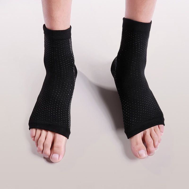 MegerĆsĂtett talp --- A zoknik alul szorosabbak, mint felĂŒl, ami finoman felfelĂ© nyomja a vĂ©rt a talprĂłl. Ha a lĂĄba vagy a lĂĄba csak enyhĂ©n duzzadt, Ă©rdemes kiprĂłbĂĄlni a Soothe Pain Relief zoknit.