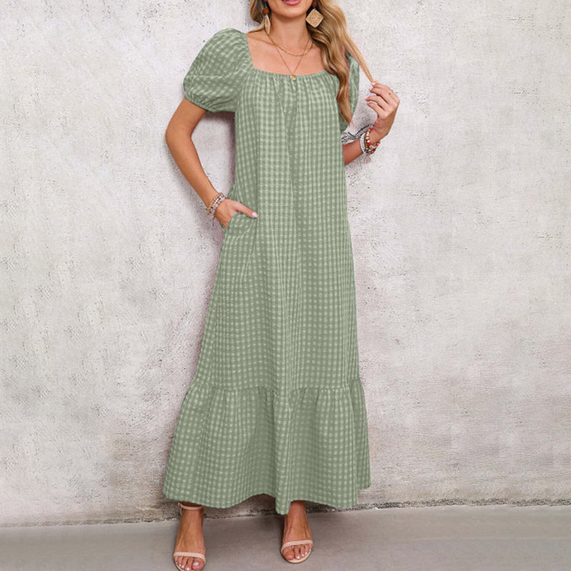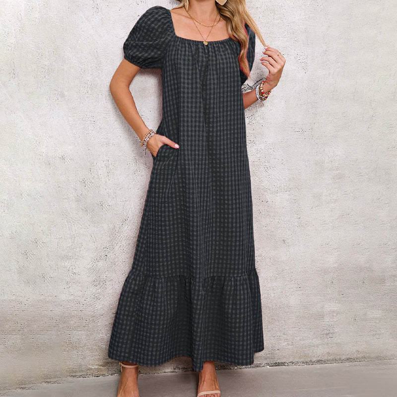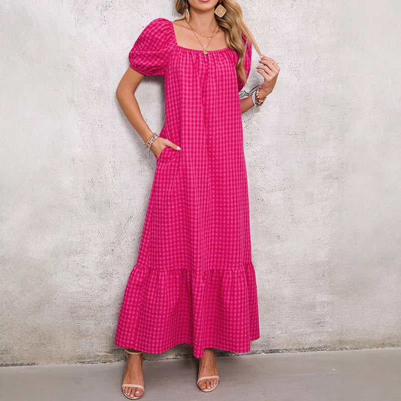 STĂLUSOS TERVEZĂS: Emeld a ruhatĂĄrad szintjĂ©t ezzel a divatos nĂ©gyzet alakĂș dekoltĂĄzs Ă©s finom fodros hem kialakĂtĂĄssal. A puffos ujjak jĂĄtĂ©kos Ă©rintĂ©st adnak, mĂg az ĂĄramlĂł maxi hossz eleganciĂĄt biztosĂt.
