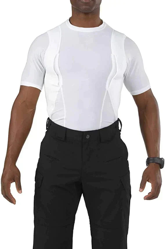 A holster a legtöbb kézifegyverrel kompatibilis, és biztonsági visszatartó rendszert kínál, hogy a fegyvered a helyén maradjon. A párnázott hálórétegek megakadályozzák a süllyedést, és eltakarják a pisztoly vagy revolver profilját szinte bármilyen ruházat alatt. Bőséges extra hely van magazinok, telefon, kis elektronikai eszközök, paprika spray, LVAD vagy más személyes felszerelések számára sport, titkos, rendőrségi, katonai, harci, támadó és rejtett alkalmazásokhoz! A rövid ujjú póló stílus KIVÁLÓAN NÉZ KI ÉS JÓL ÉRZŐDIK, bármilyen helyszínen, ing alatt, póló alatt vagy pulóver alatt!