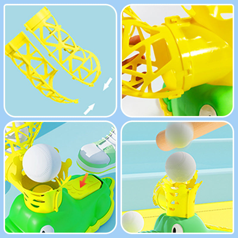 KÖNNYŰ JÁTSZANI - Úgy terveztük ezt a labdaadagoló gépet, hogy rendkívül kényelmes legyen a használata. Egyszerűen csak töltsön be 3/6 műanyag baseball labdát a gépbe, nyomja meg a pedált, és nézze, ahogy a labda a levegőbe repül. Ez egy egyszerű és intuitív folyamat, amely lehetővé teszi a gyerekeknek, hogy könnyedén élvezhessék az önálló vagy csoportos játék óráit. Lendüljön meg, és nézze, ahogy a labdák felrepülnek!