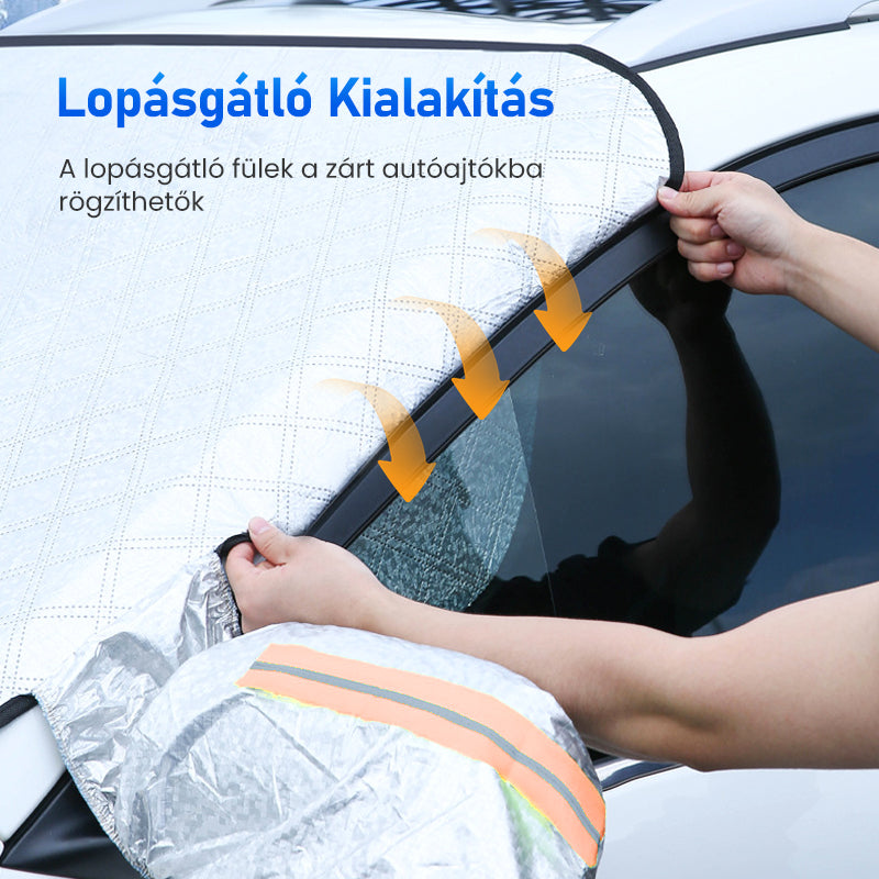 LOPĂSGĂTLĂ KIALAKĂTĂS - MindkĂ©t oldalon lopĂĄsgĂĄtlĂł fĂŒlekkel terveztĂ©k, amelyek biztonsĂĄgosan az autĂł zĂĄrt ajtĂłiba rögzĂthetĆk. Ez a hatĂ©kony mechanizmus megakadĂĄlyozza a takarĂł jogosulatlan eltĂĄvolĂtĂĄsĂĄt, Ă©s extra vĂ©delmet nyĂșjt erĆs szĂ©l ellen.