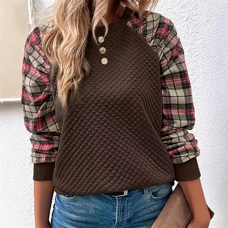 BĂJOS KOCKĂS UJJĂ DIZĂJN: A klasszikus kockĂĄs ujjak nosztalgikus, otthonos hangulatot kölcsönöznek, gyönyörƱen kontrasztĂĄlva a sima testtel, Ăgy bĂĄrhol is jĂĄrsz, idĆtlen stĂlusban tƱnsz ki.