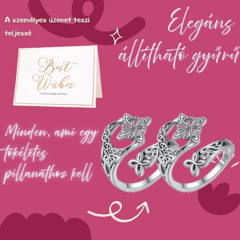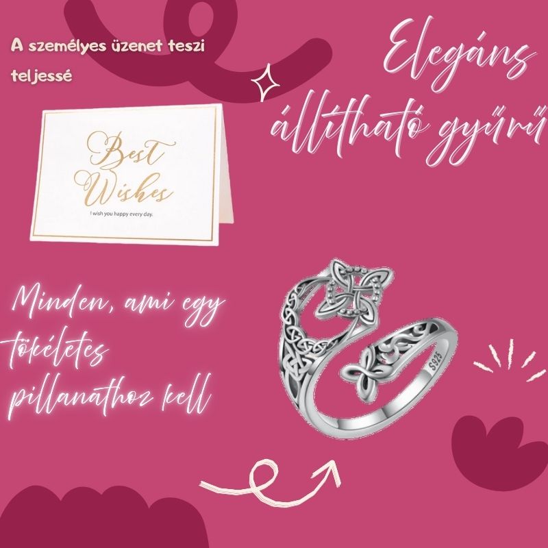 A: Ez a gyƱrƱ egy elegåns kelta csomós mintåzattal rendelkezik, amely a végtelen szeretetet és a kapcsolatokat szimbolizålja. Elegåns megjelenése miatt népszerƱ vålasztås ajåndéknak és mindennapi viseletnek egyarånt.