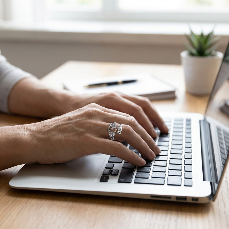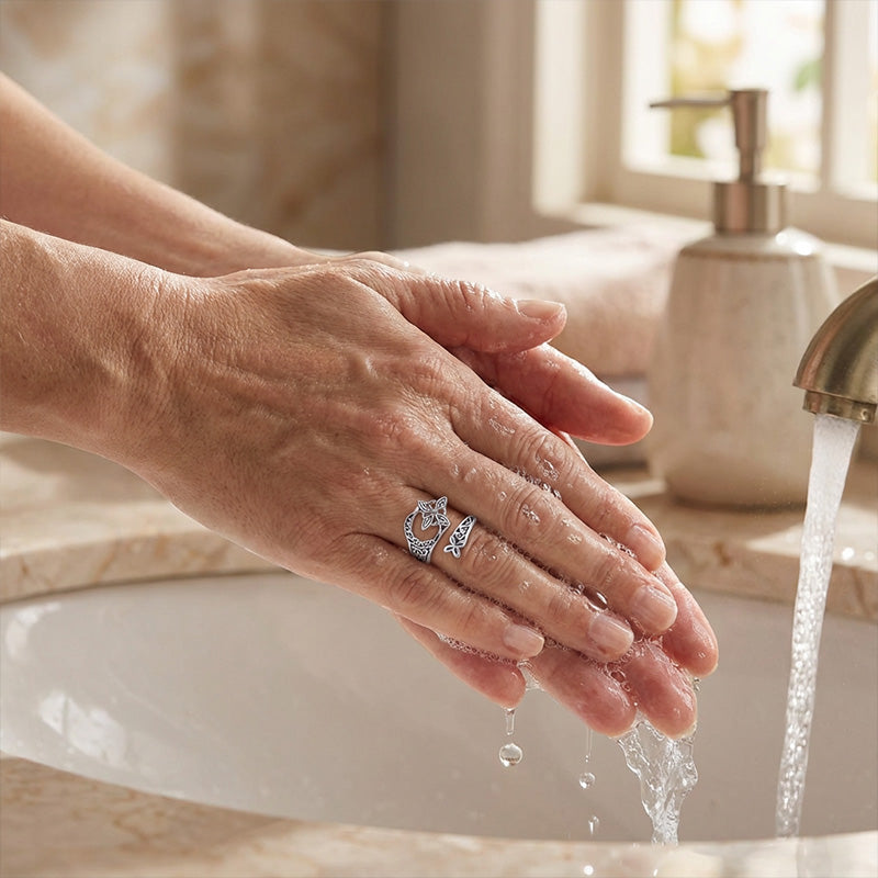 A: A gyƱrƱt puha, szĂĄraz ruhĂĄval tisztĂthatod, hogy megĆrizd fĂ©nyĂ©t. KerĂŒld a durva vegyszerek hasznĂĄlatĂĄt, Ă©s tĂĄrold szĂĄraz, sötĂ©t helyen, amikor nem viseled.