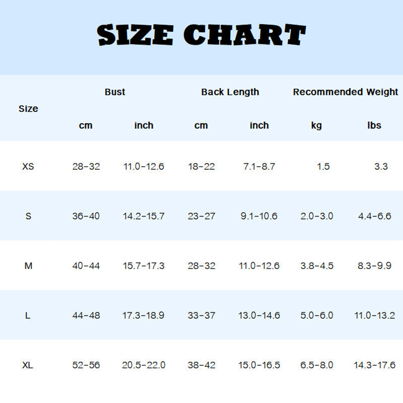 A mĂ©retvĂĄlasztĂĄsnĂĄl a mellkas kerĂŒletĂ©t Ă©s a hĂĄt hosszĂĄt kell elĆnyben rĂ©szesĂteni, kĂŒlönösen olyan fajtĂĄk esetĂ©ben, mint a schnauzerek, a francia bulldogok Ă©s a macskĂĄk.