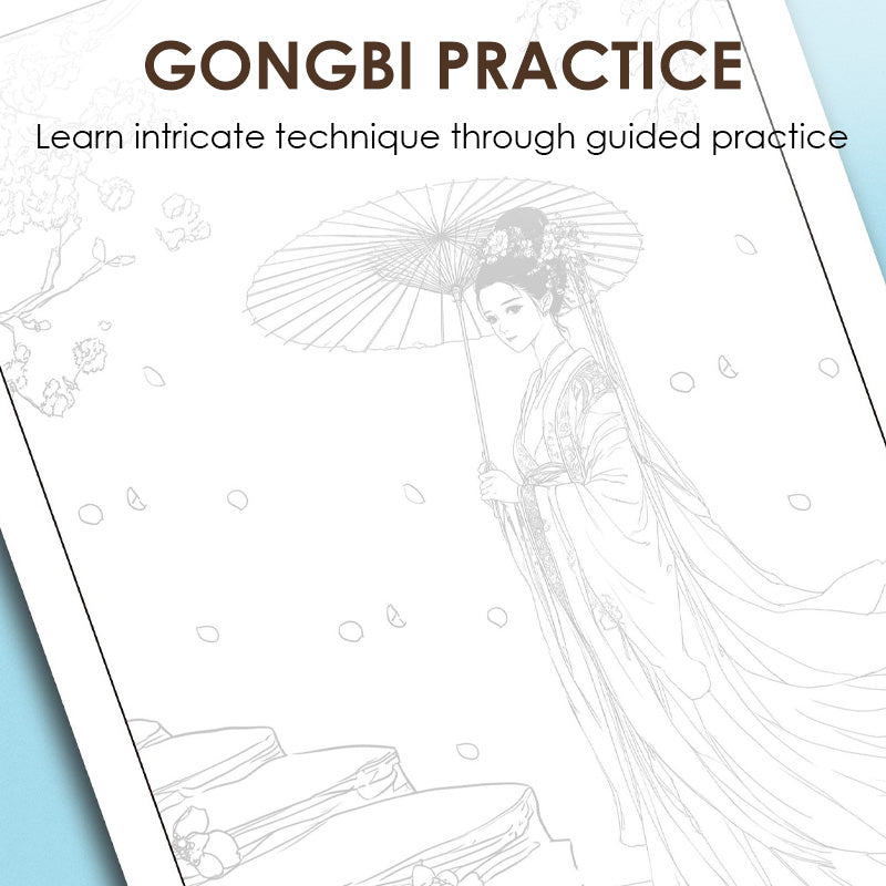 GONGBI KÖVETÉSI GYAKORLÁS – A bonyolult Gongbi stílust hangsúlyozva ez a könyv részletes vonásgyakorlásokon keresztül vezeti végig a tanulókat. A klasszikus kompozíciók ismétlésével a felhasználók megérthetik az ecsetnyomást, a vonalváltozást és a kompozíciós egyensúlyt. Ez a módszer lehetővé teszi a tanulók számára, hogy elsajátítsák a hagyományos technikákat, miközben fokozatosan elsajátítják a kifinomult ecsetkezelés árnyalatait.