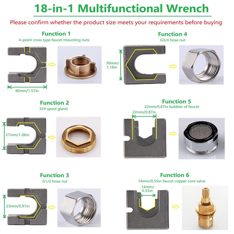 A munkaerĆ-megtakarĂtĂł lyuk megkönnyĂti a forgatĂĄst. A mosdĂłszerelĆ szerszĂĄm segĂtsĂ©gĂ©vel könnyedĂ©n elkerĂŒlheti a kĂ©nyelmetlen szögƱ forgatĂĄst, anĂ©lkĂŒl, hogy megkarcolnĂĄ a csaptelep Ă©s a mosdĂł felĂŒletĂ©t.