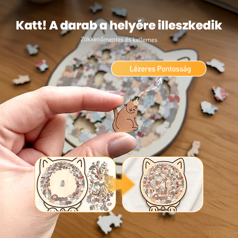 🎄🎁 135 darabos, Morandi-színekkel festett, macska alakú fa kirakós játék 🎅