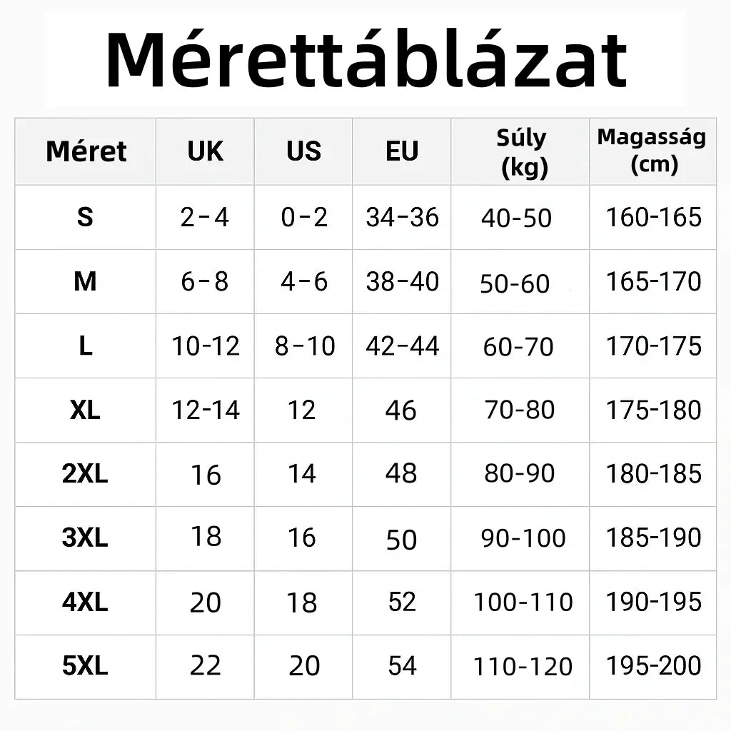 VĂĄsĂĄrlĂĄs elĆtt kĂ©rjĂŒk, gondosan ellenĆrizze a mĂ©rettĂĄblĂĄzatot.