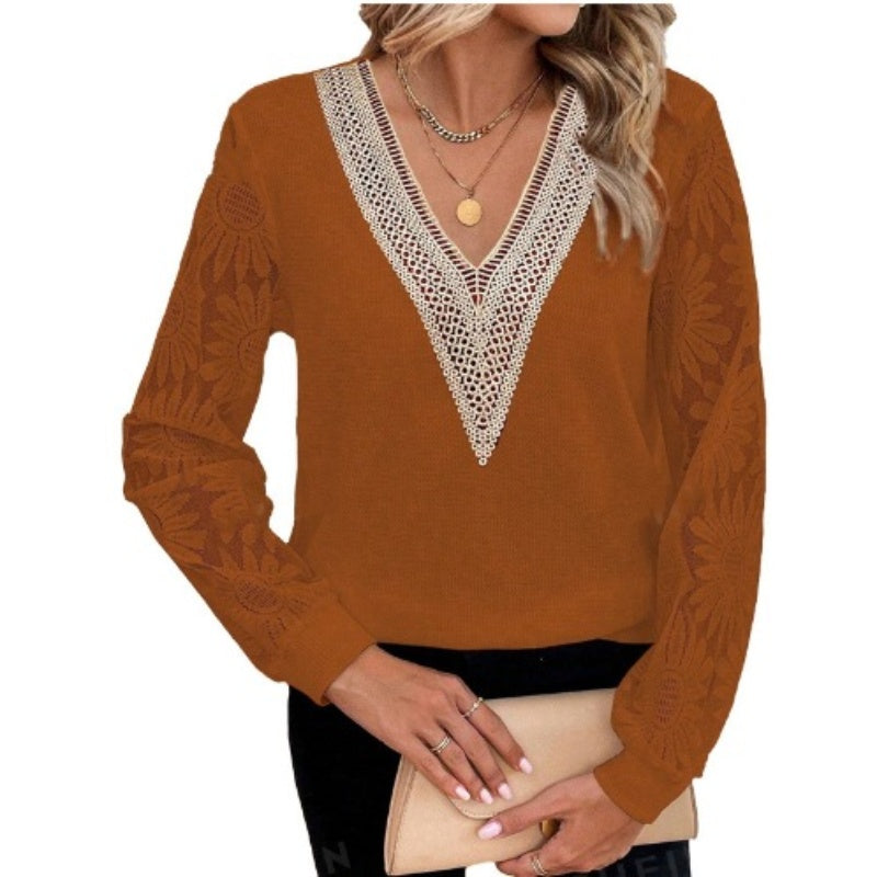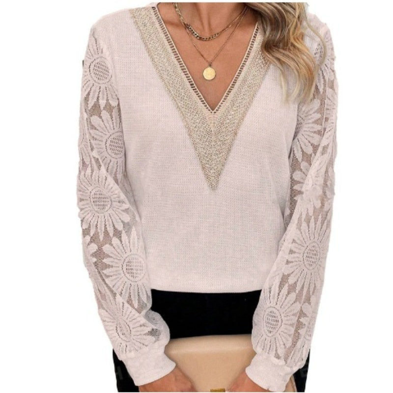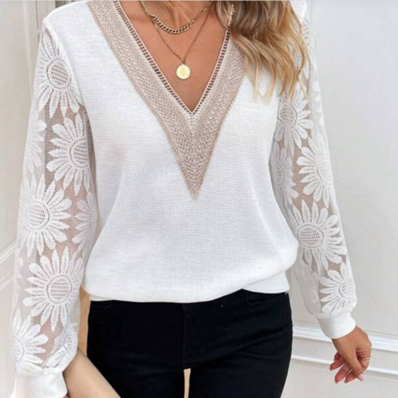 1Ă ElegĂĄns VirĂĄgos CsipkĂ©s UjjĂș V-NyakĂș FelsĆ