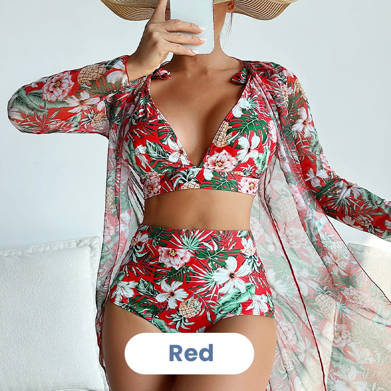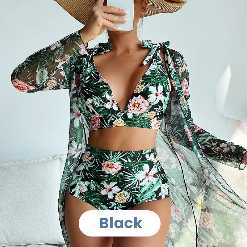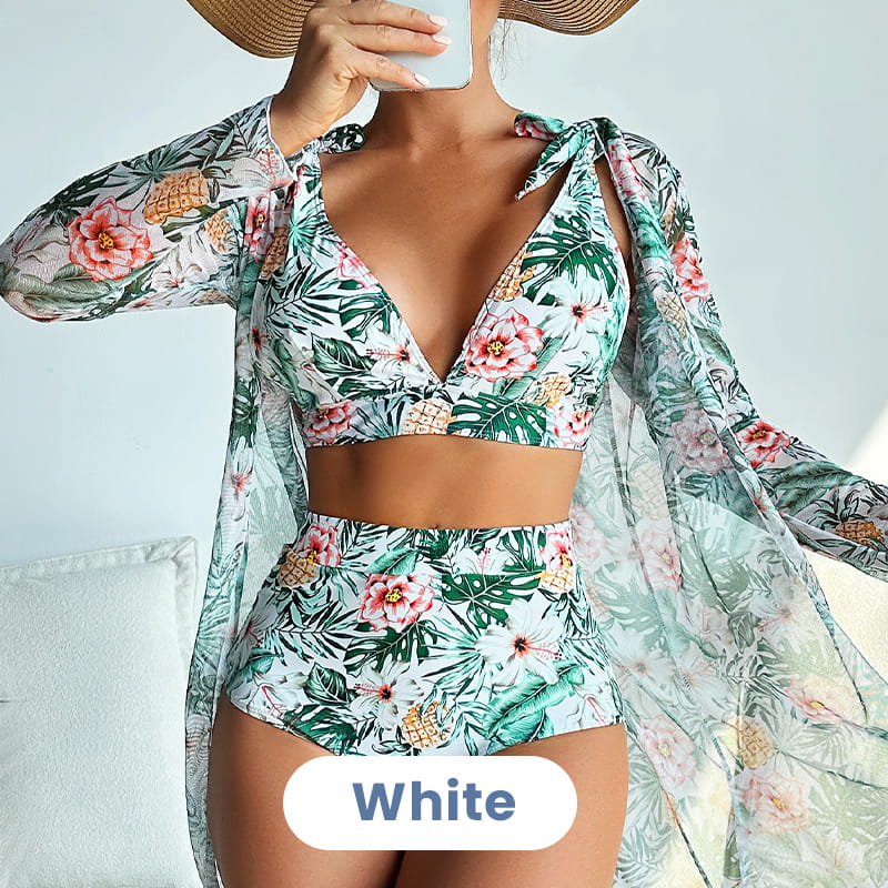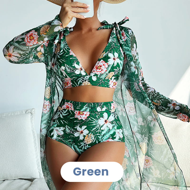 TELJES TÜDŐRUHA SZETT - Poliészterből készült, ez a háromrészes fürdőruha szett könnyű, légáteresztő, puha és gyűrődésmentes, biztosítva a kényelmet.