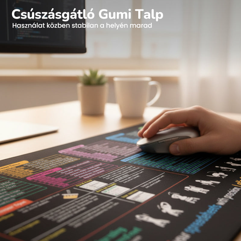 CSĂSZĂSMENTES GUMI TALP: Egy csĂșszkĂĄlĂł egĂ©rpad ĂĄllandĂł figyelemelterelĂ©s. AlĂĄtĂ©tĂŒnk termĂ©szetes gumi talppal rendelkezik, amely szilĂĄrdan tapad az asztalhoz, biztosĂtva, hogy a helyĂ©n maradjon intenzĂv munka sorĂĄn vagy projektek alatt.